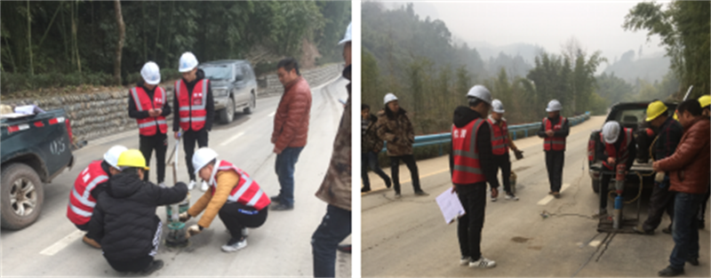 1月25日,寶興縣公路養(yǎng)護段組織第三方試驗檢測機構(gòu)對路橋公司承建的“羅家村一、四、七組通組公路改(擴)建工程(K0+000~K0+800段)路面鋪筑及沿線邊溝、 交安工程”進行交工驗收外業(yè)檢測。寶興縣發(fā)改局、紀檢組以及參建監(jiān)理、設(shè)計、施工單位代表一同前往該項目現(xiàn)場進行交工驗收。