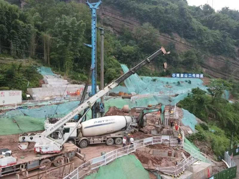 “咚咚咚……”在雨城區(qū)多營(yíng)鎮(zhèn)五營(yíng)村熊家山二號(hào)隧道出口端空地上,旋挖鉆機(jī)開足馬力,朝著地層深處掘進(jìn),不斷發(fā)出富有節(jié)奏的聲響!懊總(gè)樁基有二十多米深!眹(guó)道318線名山區(qū)黑竹(成都界)至雨城區(qū)多營(yíng)段改建工程項(xiàng)目副經(jīng)理林洲,每天都要到各施工點(diǎn)位查看進(jìn)度。他說,熊家山二號(hào)隧道附近山體為順層帶,易產(chǎn)生滑坡,進(jìn)洞施工前需要先在洞外打抗滑樁,以確保施工安全,目前還在開展剩下3根抗滑樁的施工。