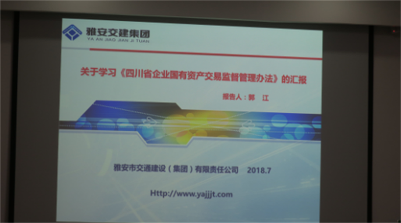 7月23日上午,雅安交建集團在四樓會議室召開“依法治企”專題學(xué)習(xí)會,會議傳達學(xué)習(xí)了《蘭開馳同志在全市生態(tài)環(huán)境保護大會上的講話》、《四川省國有資產(chǎn)交易監(jiān)督管理辦法》。