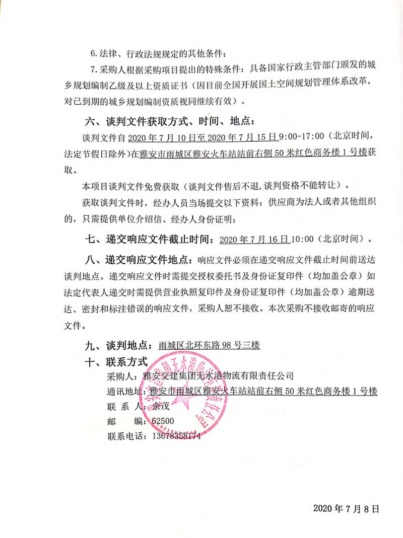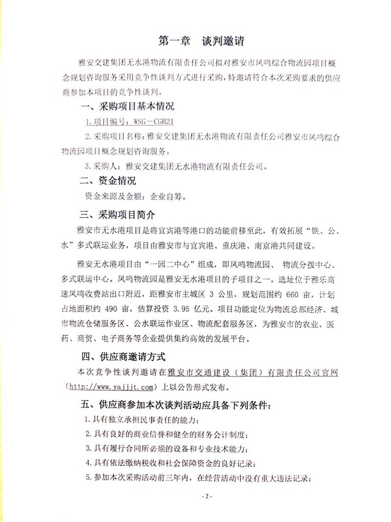 雅安交建集團(tuán)無(wú)水港物流有限責(zé)任公司雅安市鳳鳴綜合物流園項(xiàng)目概念規(guī)劃咨詢服務(wù)競(jìng)爭(zhēng)性談判公告