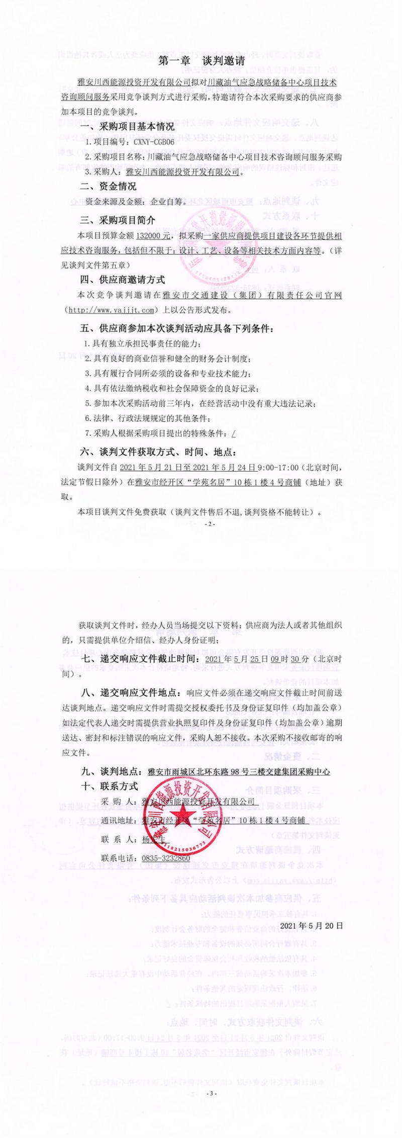 雅安川西能源投資開發(fā)有限公司川藏油氣應急戰(zhàn)略儲備中心項目技術咨詢顧問服務采購競爭談判公告