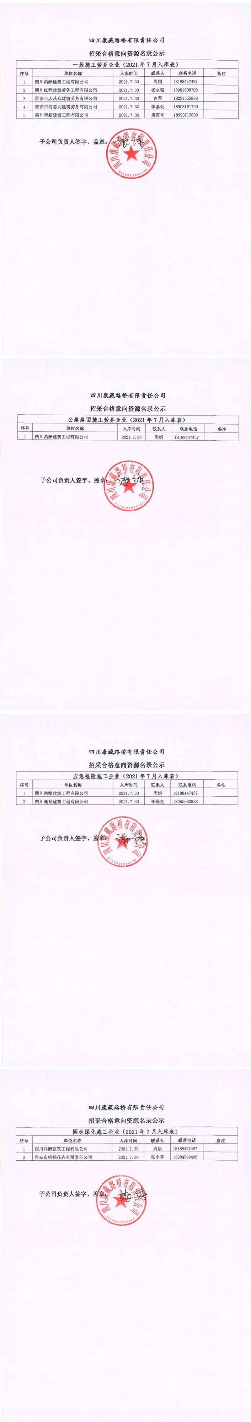 四川康藏路橋有限責(zé)任公司招采合格意向資源名錄公示