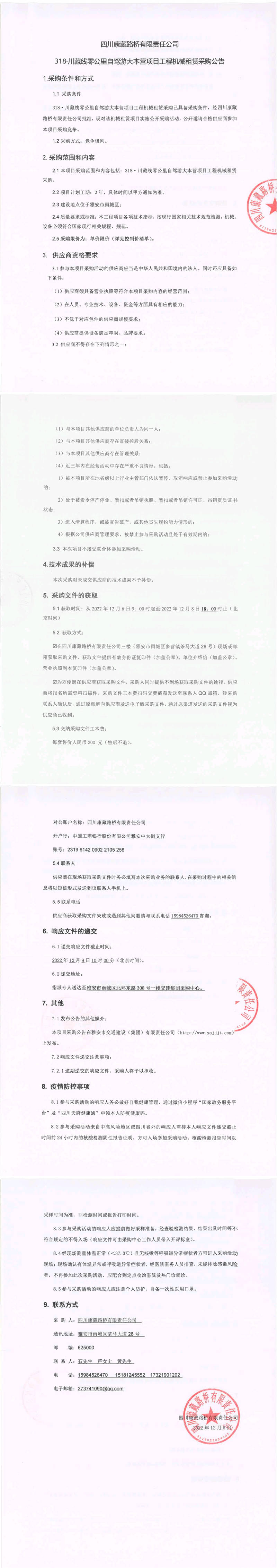 四川康藏路橋有限責(zé)任公司318.川藏線零公里自駕大本營項目工程機(jī)械租賃采購公告