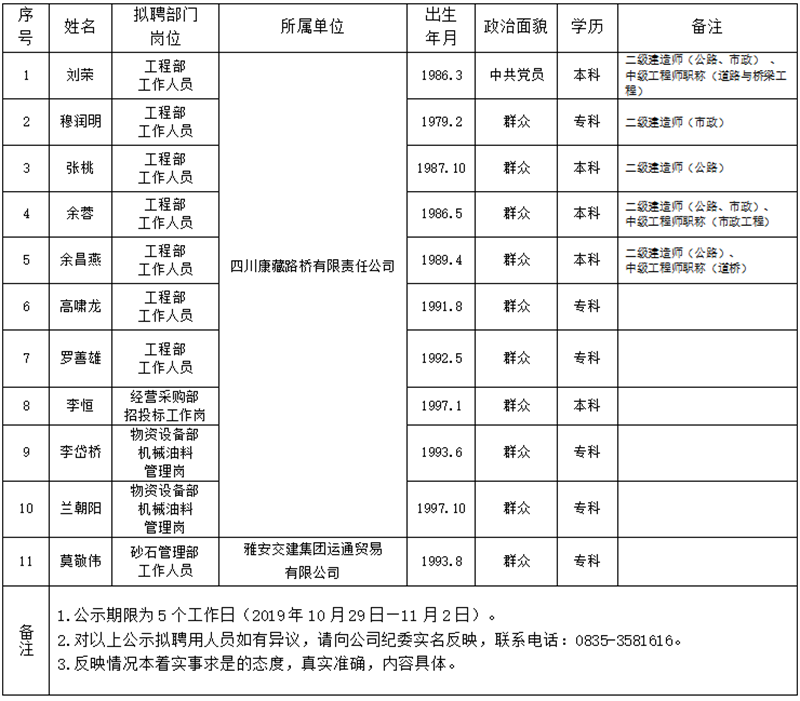 雅安交建集團關(guān)于公開招聘所屬子公司班子成員的公告(路橋公司)