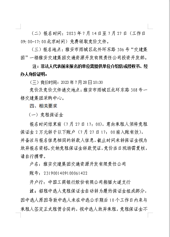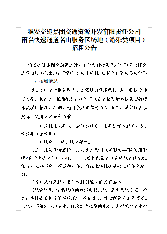 雅安交建集團(tuán)交通資源開發(fā)有限責(zé)任公司雨名快速通道名山服務(wù)區(qū)場地(游樂類項目)招租公告附件