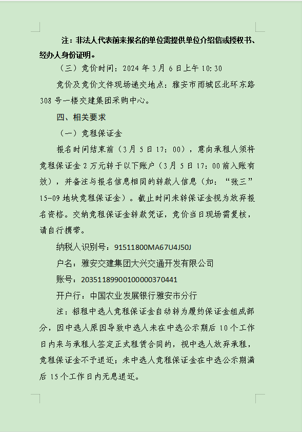 雅安交建集團(tuán)大興交通資源開發(fā)有限公司關(guān)于雨城區(qū)姚橋片區(qū)15-09地塊2024年競價招租的公告附件