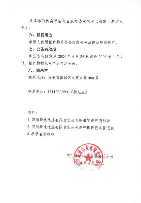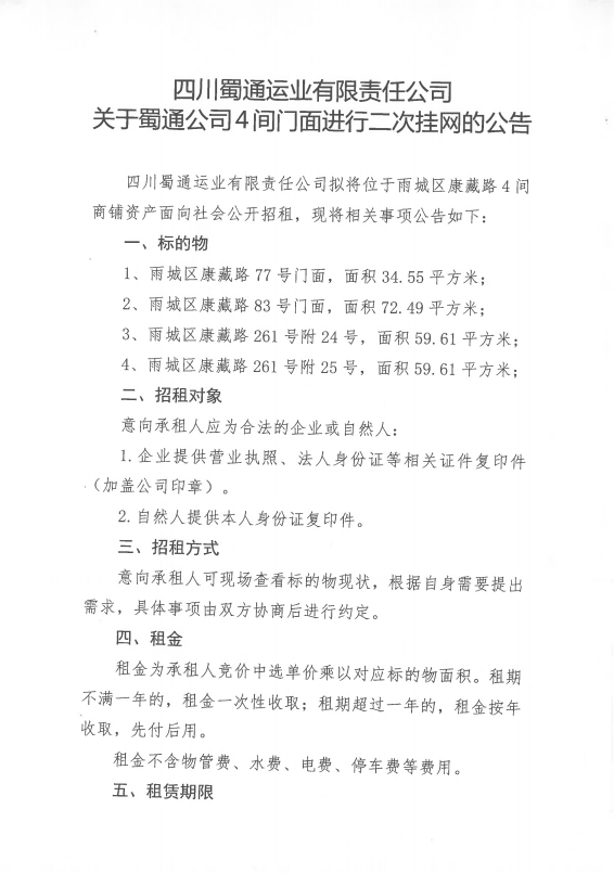 四川蜀通運業(yè)有限責任公司關于蜀通公司4間門面進行二次掛網的公告附件