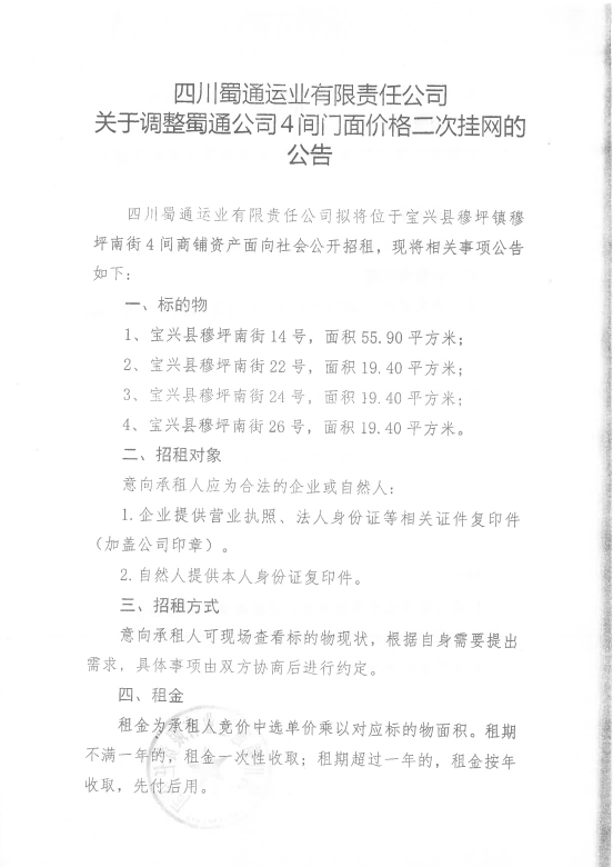 ËÄ´¨Êñͨß\(y¨´n)˜I(y¨¨)ÓÐÏÞØŸ(z¨¦)Èι«Ë¾êP(gu¨¡n)ÓÚÕ{(di¨¤o)ÕûÊñͨ¹«Ë¾4égéTÃæƒr¸ñ¶þ´Î’ì¾W(w¨£ng)µÄ¹«¸æ