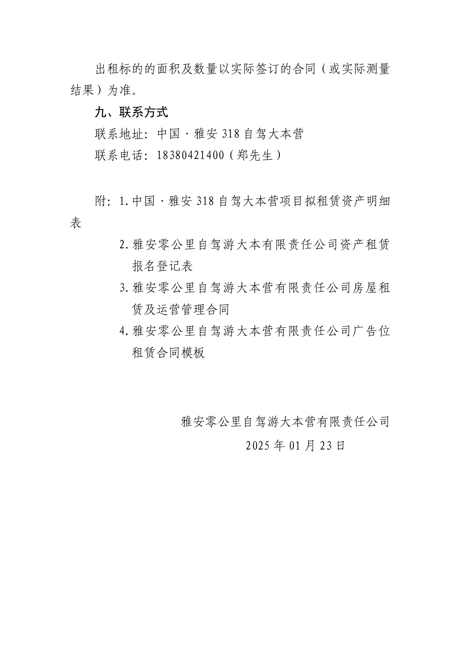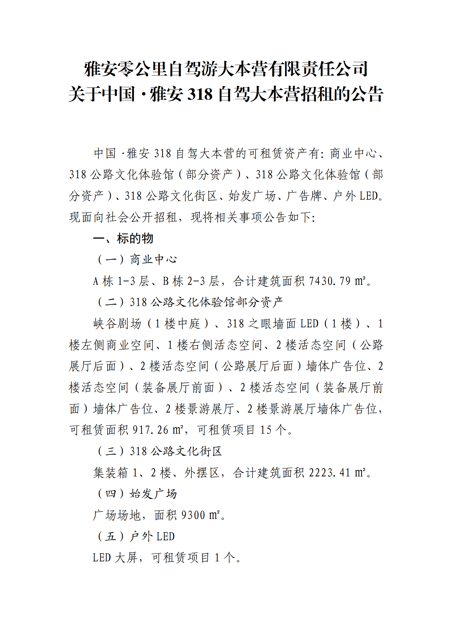 雅安零公里自駕游大本營有限責任公司 關于中國·雅安318自駕大本營招租的公告
