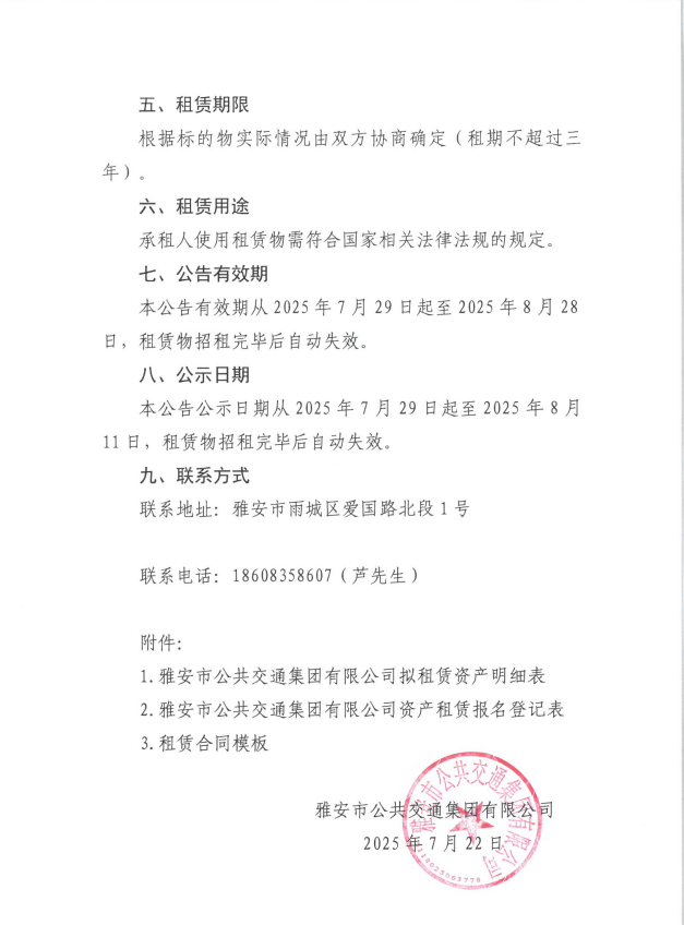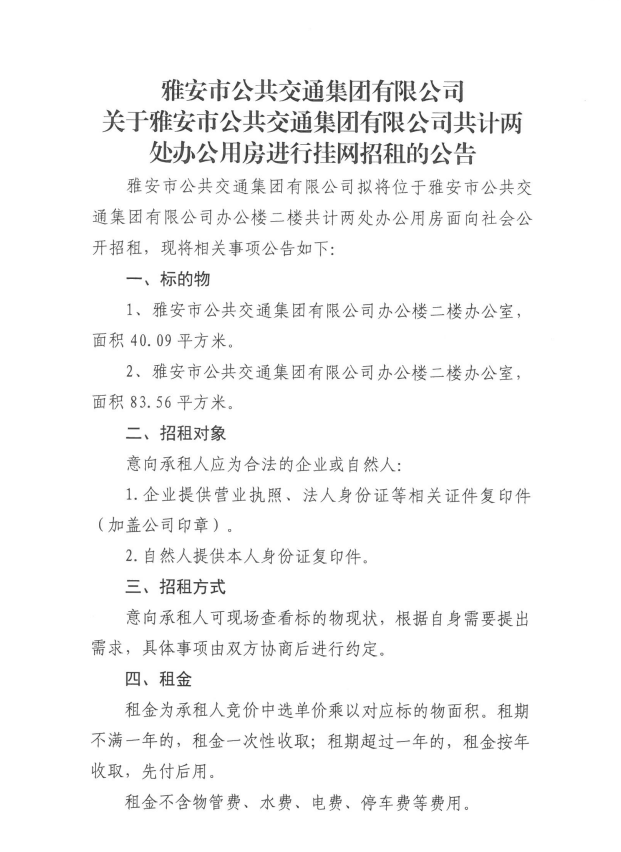 關于雅安市公共交通集團有限公司共計兩處辦公用房進行掛網招租的公告